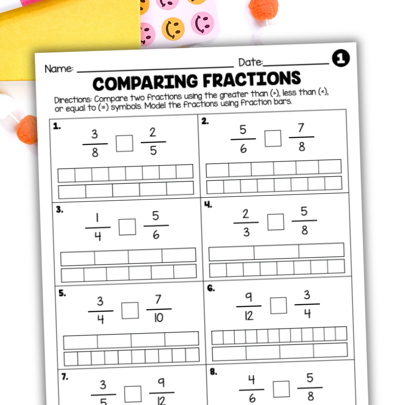 Pair it with finding common denominators practice when needed to give students a complete understanding of how to compare fractions.